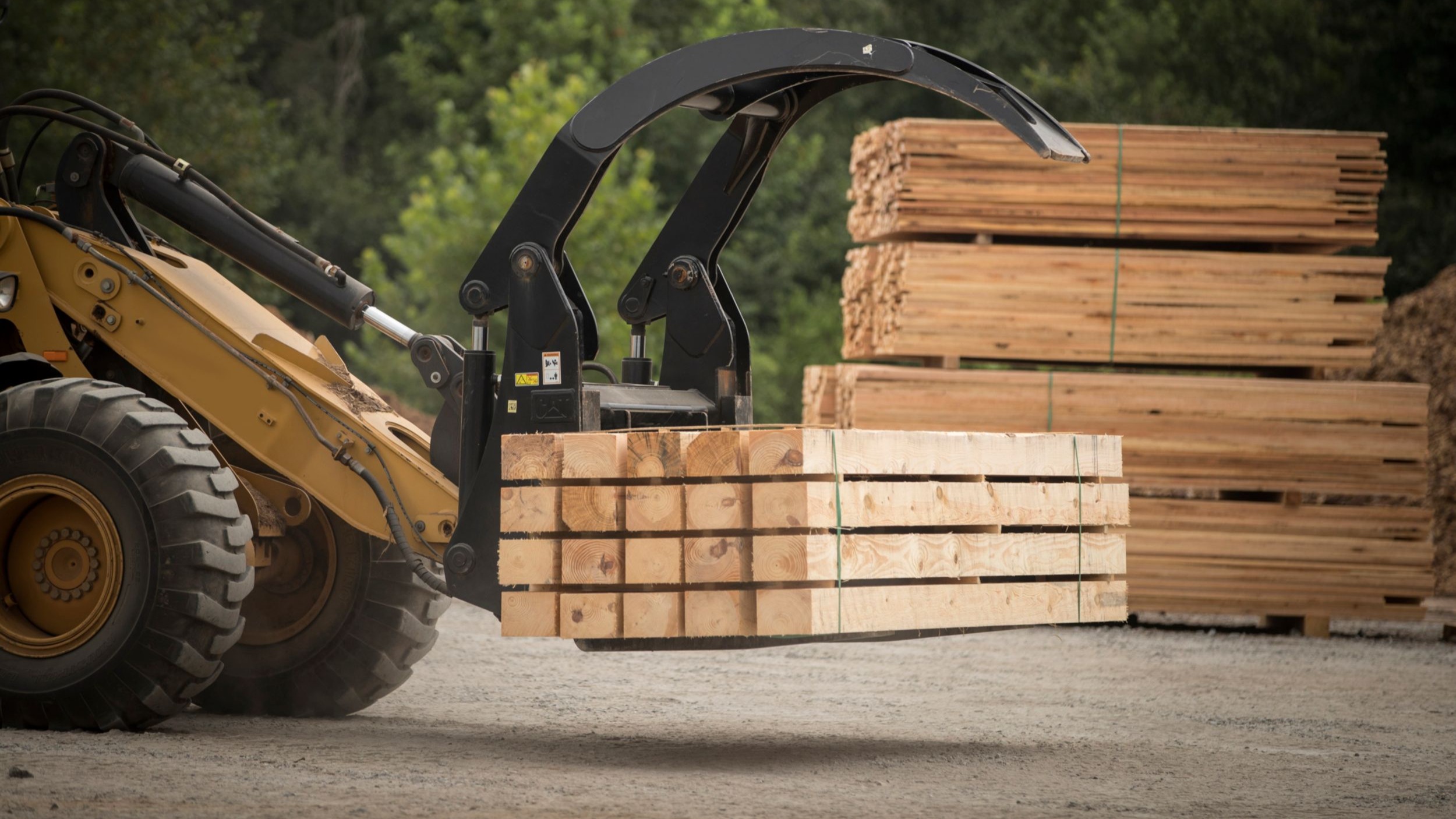 Cat® Semi-Millyard Forks for Small Wheel Loaders are designed to efficiently load and unload from trucks, capably sort pole and decking materials, effectively feed sawmills as well as handle other long or bulky material.